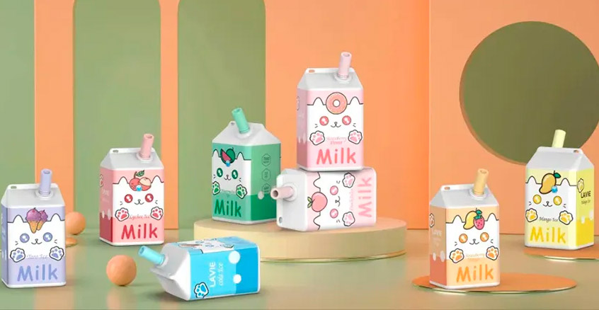 Lavie Milk 7000 представляет собой серию одноразок с дизайном, вдохновленным молочными продуктами. Корпус устройств выполнен в форме миниатюрных молочных упаковок, что делает их не только привлекательными, но и легко узнаваемыми. Яркие и милые иллюстрации на поверхности добавляют устройствам шарма и привлекают внимание покупателей.
