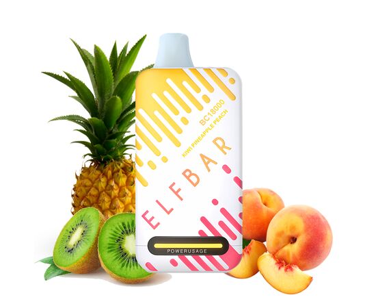 Электронная сигарета Elf Bar BC18000 Kiwi Pineapple Peach (Киви Ананас Персик) дарит незабываемый опыт вейпинга вместе с натуральным вкусом и густыми облаками ароматного пара. Имеет возможность перезарядки, одного заряда аккумулятора хватает на 1 день или больше. Имеет яркий внешний вид. Этот одноразовый вейп подарит вам высокий уровень автономности без необходимости проводит заправку каждый день. После использования одноразку необходимо утилизировать.