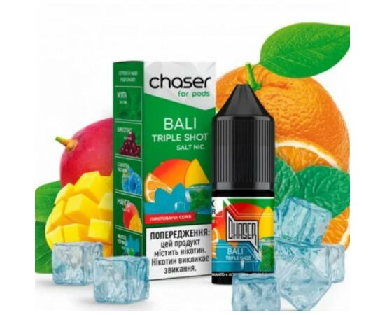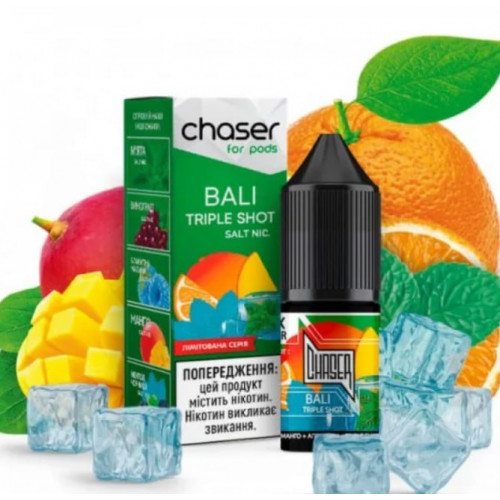Жидкость Chaser Bali Triple Shot (Чейзер Манго Апельсин Маракуйя) 15мл производится в Украине из лучших компонентов. В основе жижи лежить солевой никотин. Соотношение растительного глицерина к пропиленгликолю состаляет 50 к 50 %. Продукт идельный для использования в POD системах с небольшим уровнем мощности. Также эта жидкость подходит для дозаправки одноразок. Уровень содержания солевого никотина удовлетворит ваши потребности, позволит сократить количество перекуров.