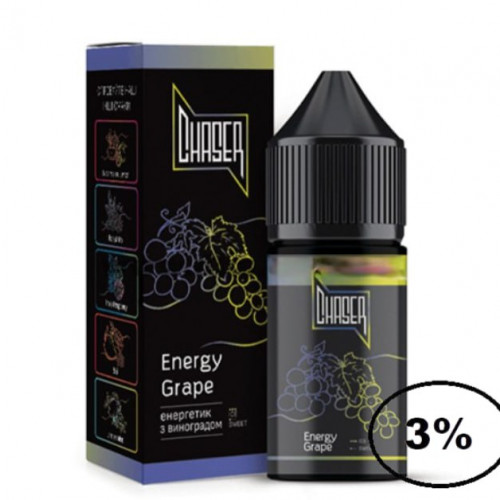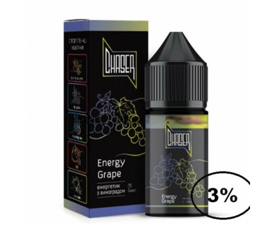 Жидкость Chaser Black Energy Grape (Чейзер Блэк Виноград Энергетик) 30мл, 3% предназначена для использования в POD системах с небольшим уровнем мощности. Производится исключительно из качественных компонентов. Обладает ярким, насыщенным и натуральным ароматом, а также большим количеством пара во время вейпинга. В основе жидкости лежит качественный солевой никотин, также для производства используются пищевые ароматизаторы от лучших производителей.