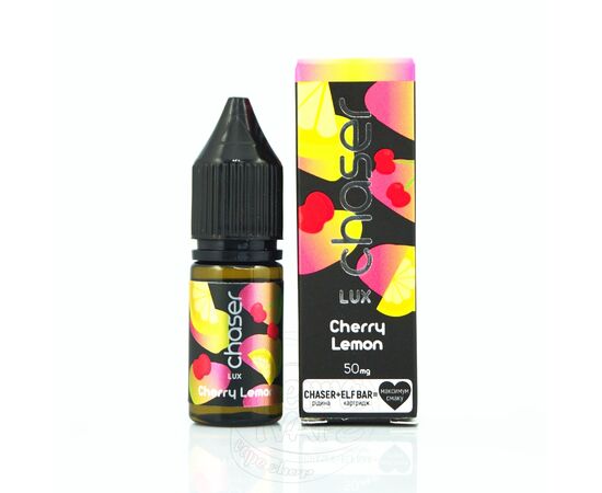 Жидкость Chaser LUX Cherry Lemon (Чейзер Люкс Вишня Лимон) 11мл, 6,5% - отличное решение для вашего вейпа. В состав продукта входят исключительно качественное сырье, включительно с солевым никотином, ароматизаторы от известных производителей, а также пищевой глицерин и пропиленгликоль медицинского качества. Жидкость предназначена для использования в вайпах с небольшой мощностью. 1 флакона хватает на несколько заправок.