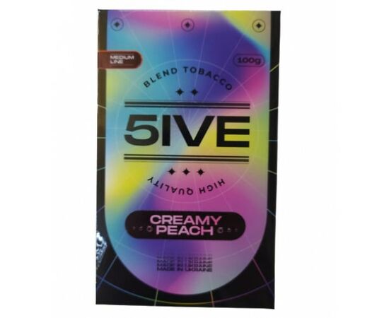 Табак 5IVE medium Creamy Peach (Кремовый Персик) 100грамм - это продукт нового Украинского бренда, который производит лучшие курительные смеси из качественного сырья. Табак отвечает высоким международным стандартам и производится из отборного табачного листа премиального качества двух сортов, Золотая Вирджиния и Барли. Листья имеют мелкую нарезку, хорошо пропитаны в сиропе и за счет этого имеют превосходные показатели дымности и жаростойкости.