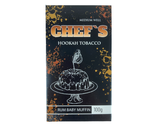 Табак Chefs Rum Baby Muffin. Ароматная домашняя выпечка с оттенком рома, очень ароматный табак, находка гурмана. Любителям смесей для кальяна высокой крепости стоит обратить внимание на табак Chefs. Это продукт Украинского производства, который производится из разных сортов табачного листа Burley и Virginia выращенного в Бразилии высокого качества. Табак нарезан мелко, обладает высоким уровнем жаростойкости. В состав смеси входят пищевые ароматизаторы высокого качества, глицерин и сахарный сироп.