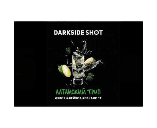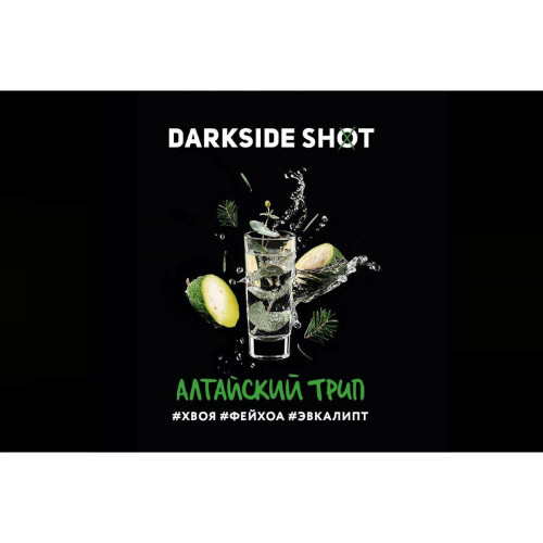 DarkSide Shot Алтайский Трип. Очень много свежести от сочетания хвои, фейхоа и эвкалипта. Заправка для кальяна DarkSide отличается наличием натурального вкуса, высокой дымностью и хорошей жаростойкостью. Производится преимущественно с табачного листа Вирджиния Голд, но также добавляется табак других сортов. Линейка DarkSide Shot отличается высоким уровнем крепости, при этом табак не горчит и отлично курится.