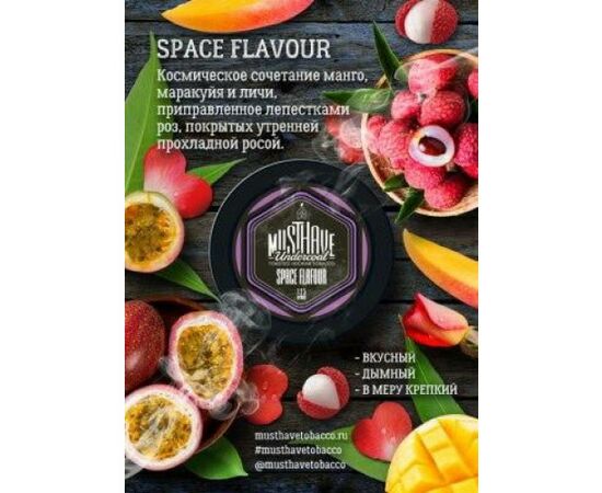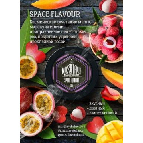 Табак для кальяна Must Have Space Flavour (Маст Хев Космический вкус ) 125 грамм производится из натурального и неповторимого сочетания табачных листьев сорта Burley светло-оранжевого и тёмно-коричневого цвета. Красители в состав продукта не входят, он имеет естественный цвет табачного листа. Во время курения вас ожидает много дыма с натуральным и ярким ароматом манго, маракуйи, личи и лепестков роз. В процессе производства используется только качественное сырье натурального происхождения.