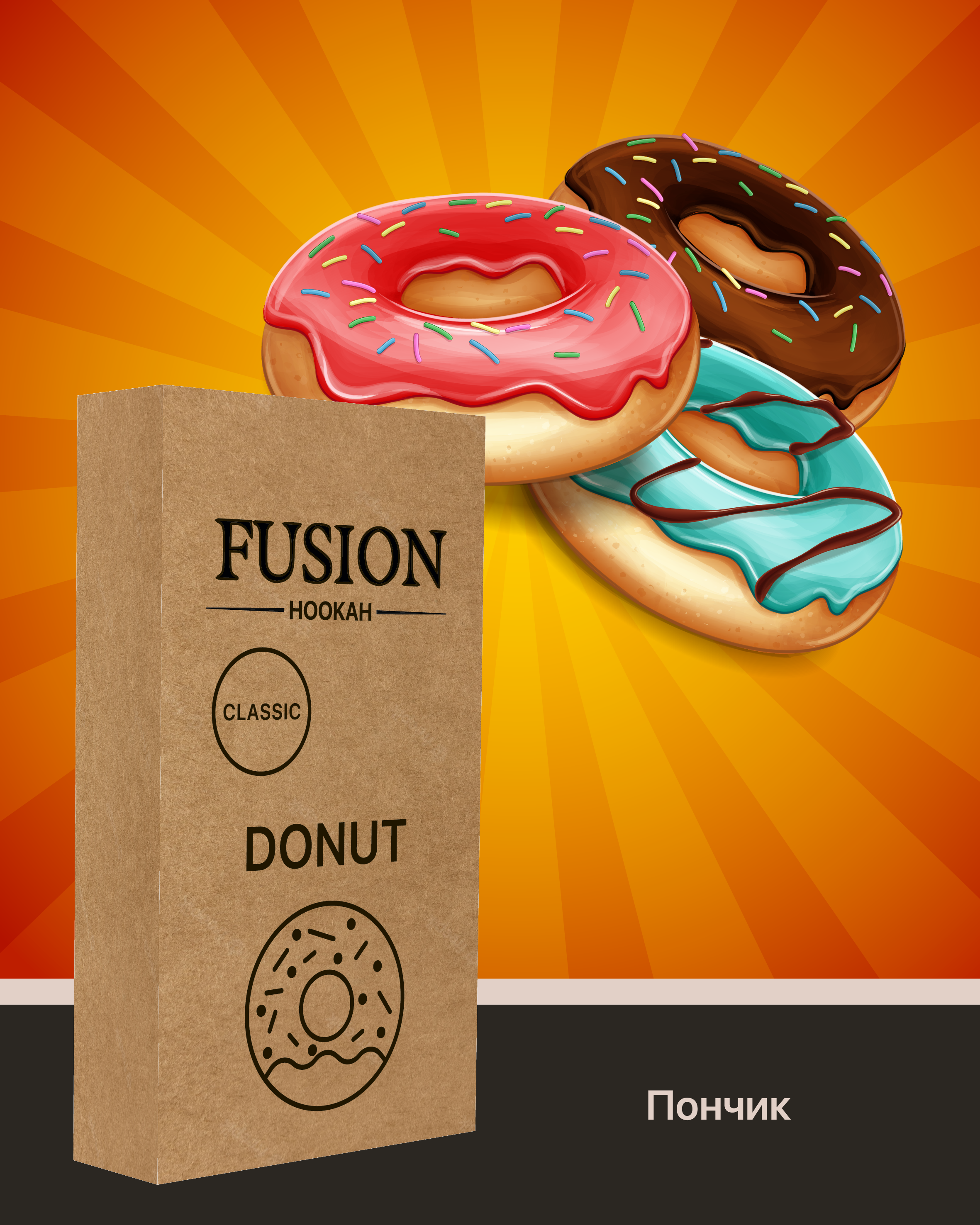 Табак Fusion Classic Glaze Donuts. Потрясающий вкус только что выпеченных пончиков с ярким глазурным ароматом. Это Украинский бренд табаков для кальяна, который производится из отборных листьев сорта Burley, а также ароматизаторов Германского производства высокого качества. Во время табак курения характеризуется приятным ароматом и большим количеством дыма. Серия Classic - это самая легкая линейка. Табак поставляется в удобных картонных 100 граммовых упаковках.