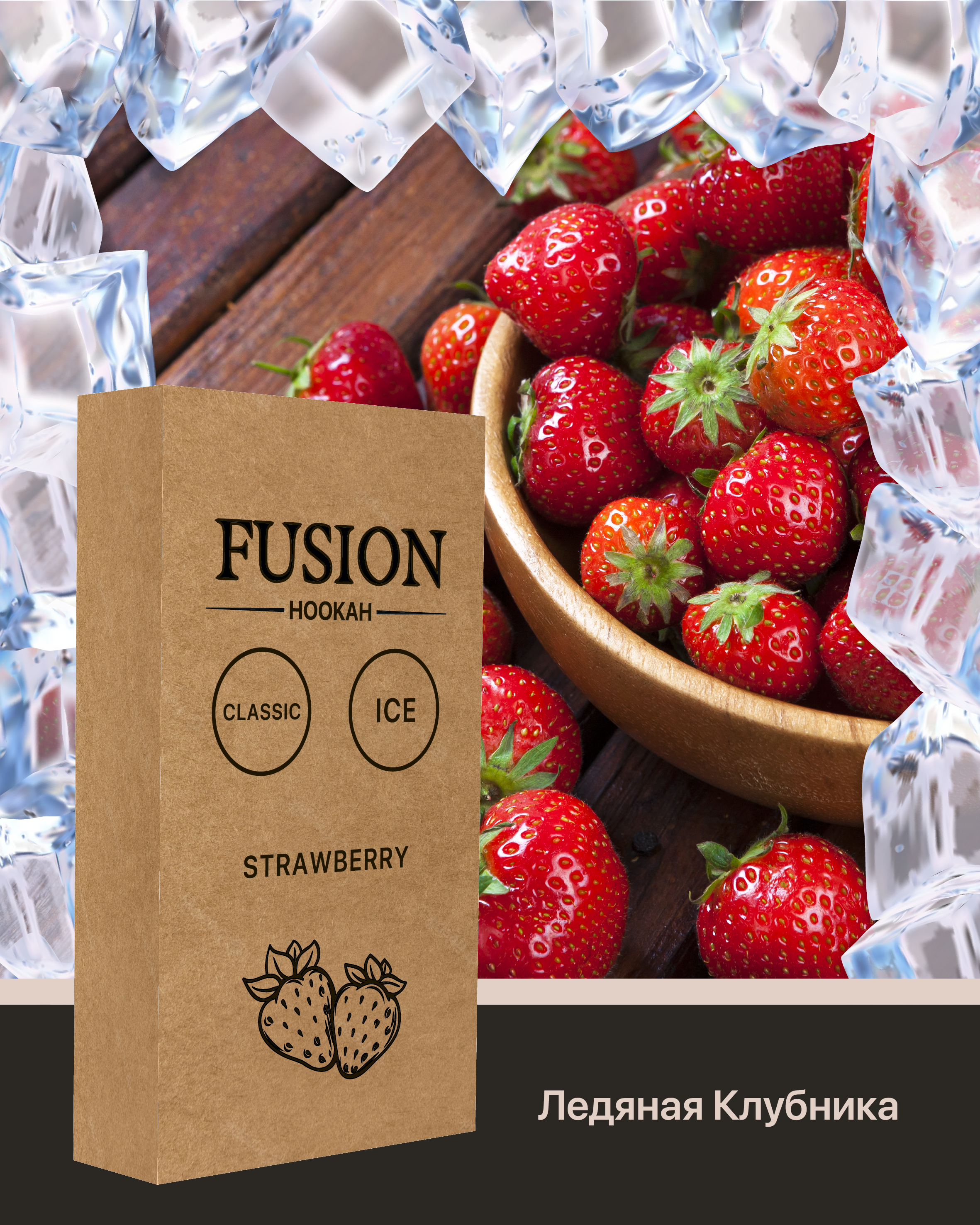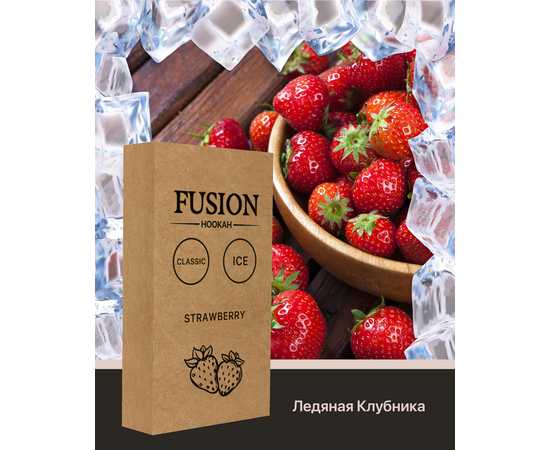 Табак Fusion Classic Ice Strawberry. Спелая и сочная летняя ягода окутана нежной прохладой. Это Украинский бренд табаков для кальяна, который производится из отборных листьев сорта Burley, а также ароматизаторов Германского производства высокого качества. Во время табак курения характеризуется приятным ароматом и большим количеством дыма. Серия Classic - это самая легкая линейка. Табак поставляется в удобных картонных 100 граммовых упаковках.