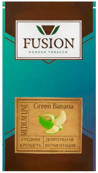 Табак Fusion Medium Green Banana. Крепкий банановый вкус, но курится легко, идеально заходит в соло. Это Украинский бренд табаков для кальяна, который производится из отборных листьев сорта Burley, а также ароматизаторов Германского производства высокого качества. Во время табак курения характеризуется приятным ароматом и большим количеством дыма. Серия Medium отличается средним уровнем крепости. Табак поставляется в удобных картонных 100 граммовых упаковках.