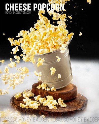 Табак Honey Badger Wild (Медовый Барсук крепкая линейка) Сырный Попкорн 100 грамм отличается высоким качеством, в составе курительной смеси исключительно отборные табачные листья от премиальных сортов. Используются лучшие ароматизаторы от известных производителей. Заправка для кальяна обладает превосходными свойствами дымности и жаростойкости, она созданна для насыщенных и длинный кальянных сессий.