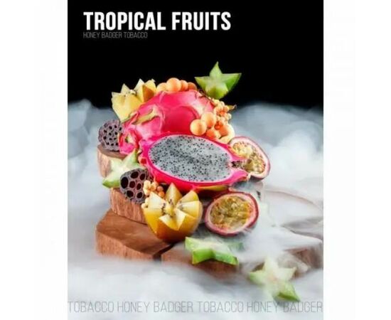 Табак Honey Badger Wild Tropical Fruit. Экзотический микс тропических фруктов. Honey Budger - это торговая марка табаков для кальяна из Украины, которая выпускается по акцизной маркой. Смесь для кальяна отличается оригинальным вкусом, высоким показателем дымности, мелкой нарезкой табака и средним количеством сиропа. В производстве используются высококачественные ароматизаторы. Линейка Wild отличается высокой крепостью. 250 граммовой упаковки хватает для большой вечеринки.