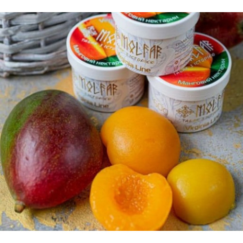 Табак Мольфар Манговый Нектарин (Mofar Virginia) 100 грамм порадует Вас большим количеством ароматного дыма с ярким и натуральным вкусом. Курительная смесь для кальяна произведена исключительно из натуральных компонентов. Кроме отборного табачного листа премиального качества в составе продукта находится пищевой глицерин, ароматизатор для пищевой промышленности и глицерин для дымности. Рекомендуется использовать глиняную чашу для максимального раскрытия аромата.