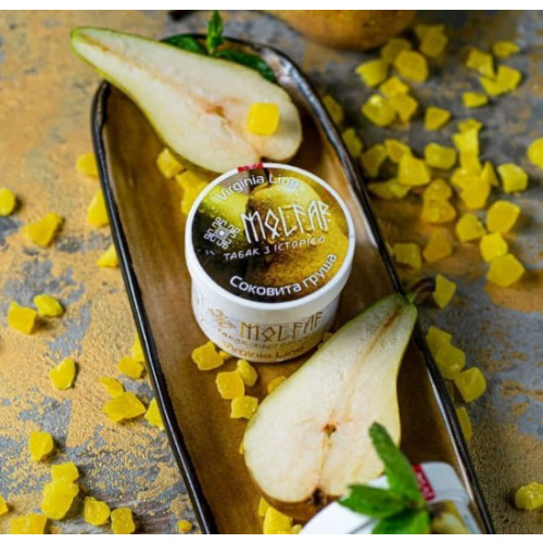 Табак Мольфар Сочная Груша (Mofar Virginia) 100 грамм производится исключительно из натуральных и отборных табачных листов премиального сорта. Обладает невысоким уровнем содержания никотина, благодаря чему подойдет и девушкам и новичкам в мире кальянов. Во время курения вы почувствуете яркий аромат, который будет клубится вместе с густым табачным дымом. Вкус яркий, но сбалансированный.