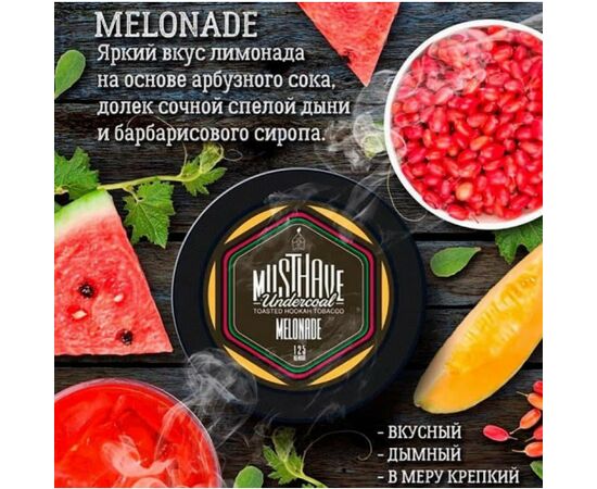 Табак Must Have Melonade (Маст Хев Мелонад) 25 грамм производится исключительно из натуральных компонентов. Смесь имеет натуральный цвет, который получается в результате смешивания табачных листов оранжевого и коричневого Барли. Уровень крепости высокий. Во время покура выделяется большое количество дыма. Работать с заправкой легко, так как табачный лист имеет мелкую нарезку.