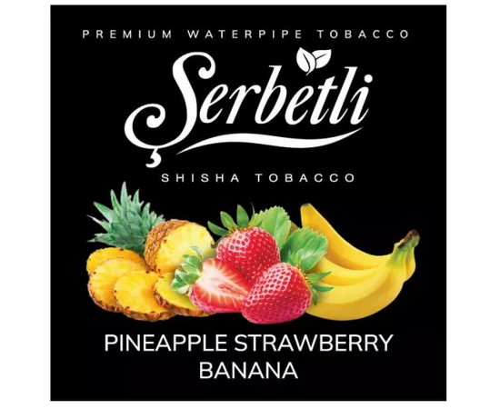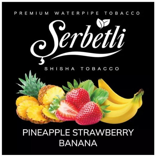 Табак Serbetli Pineapple Strawberry Banana (Ананас Клубника Банан) 100 гр обладает отличными курительными характеристиками, отличается высокими показателями дымности и жаростойкости. Во время курения кальяна выделяется густой дым с натуральным ароматом. Производится курительная заправка для кальяна из табачных листьев высокого качества премиальных сортов. В состав продукта входят натуральные ароматизаторы для пищевой промышленности.