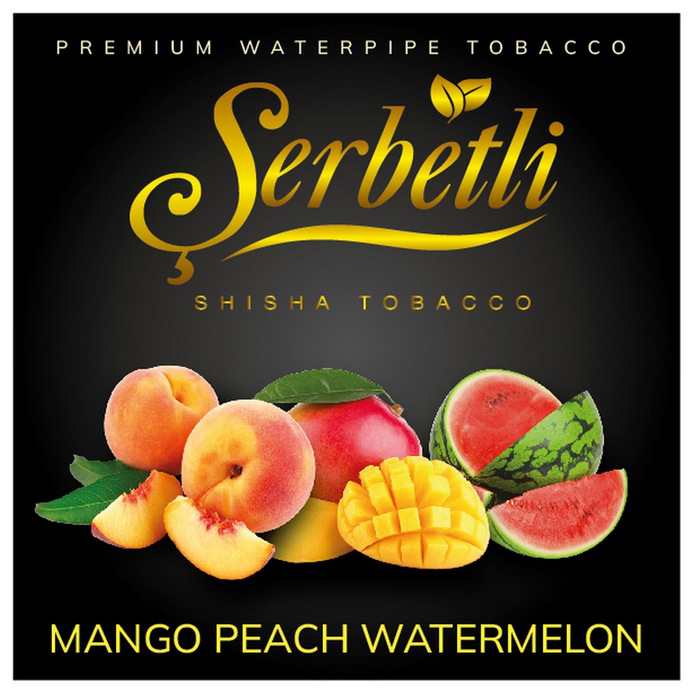 Табак Serbetli Mango Peach Watermelon (Манго Персик Арбуз) 500 гр производится из высококачественных и натуральных табачных листьев премиального сорта. Заправка для кальяна имеет натуральный цвет, красители не используются. Качество курительной смеси соответствует международным стандартам. Для вкуса используются высококачественные ароматизаторы для пищевой промышленности. Производитель рекомендует использовать глиняную чашу для максимального раскрытия вкуса.
