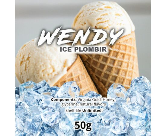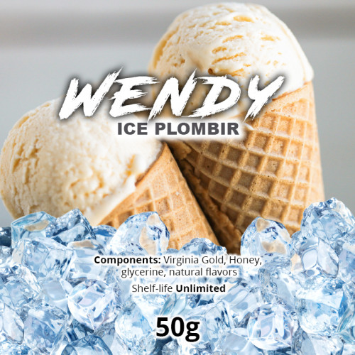 Wendy Ice Plombir . Вкус сливочного мороженного, чистый, яркий и незабываемый. Заправка для кальяна Wendy выпускается в бюджетном сегменте, тем не менее, в её составе находятся ингредиенты премиального качества. Изготовляется табачная смесь из высококачественного табачного листа Вирджиния, а также из натуральных ароматизаторов. Во время курения чувствуется яркий аромат, который дополнен ароматным табачным вкусом.