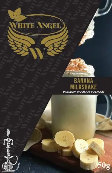 White Angel Banana Milkshake. Банановый молочный коктейль, очень приятный вкус. Приятный на вкус табак, который не горчит ни при каких обстоятельствах, обладает высоким показателем жаростойкости - это характеристики заправки для кальяна Белый Ангел (White Angel). Она производится из топового табачного листа Вирджиния. Нарезка табака мелкая, в упаковке находится большое количество сиропа. Используются только натуральные ароматизаторы.