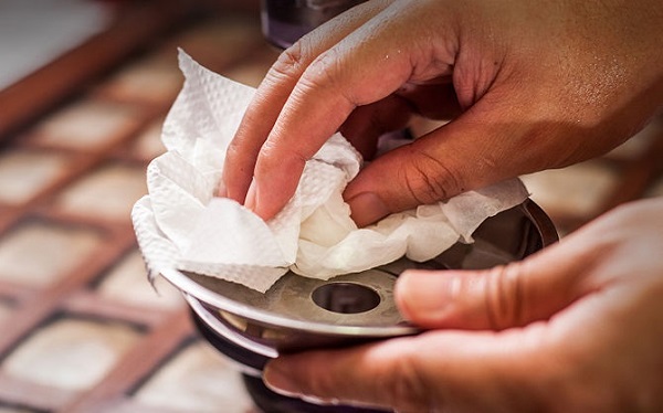 Алгоритм дій нам уже відомий: позбавитися залишків використаної рідини, замочити в гарячій воді з миючим засобом, почекати деякий час, при сильному забрудненні використовувати скребок або спеціальний йорж для колб, промити чистою проточною водою. І обов'язково дайте йому повністю висохнути – це дуже важливо, тому що запобігає утворенню цвілі.