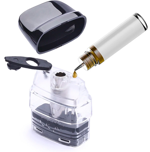 - Для відкритих систем POD. Картриджі, що заправляються, - це такі картриджі, які можна заправляти своєю рідиною через спеціальний отвір у верхній або нижній частині. Картриджі, що заправляються, дозволяють вибирати будь-який смак і міцність рідини, а також економити гроші на купівлі готових картриджів.