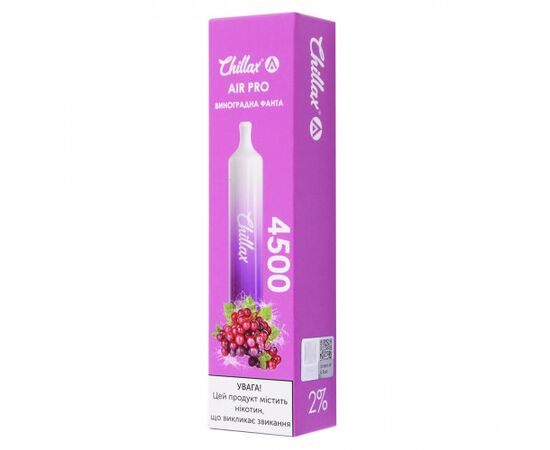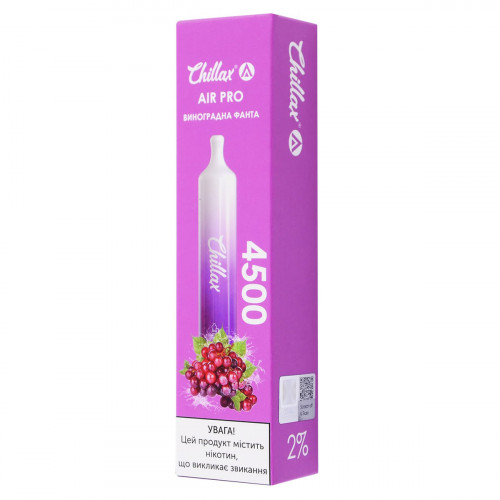 Електронні сигарети Chillax 4500 (Чіллакс Виноградна Фанта) 2% - це зручний пристрій для вейпінгу, відмінно підходить для вейперів-початківців, а також тих курців, які в перспективі хочуть кинути палити. Має чудовий аромат, за якістю не поступається продуктам більш відомих брендів. не вимагає заправки, заряджання та придбання додаткових аксесуарів або витратних матеріалів.
