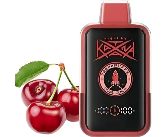 Електронна сигарета Katana 20000 Black Cherry (Чорна Вишня) характеризується великим запасом рідини з сольового нікотину, якої у середньому має вистачити на 20000 затяжок. Працює одноразка на батареї, що перезаряджається, ємністю 850 мАг. Пристрій має зручну систему індикації на екрані внизу лицьової панелі. За випаровування жижі з максимальною ефективністю відповідає подвійний койл. Під час куріння на вас чекає густа і насичена приємним ароматом пара.