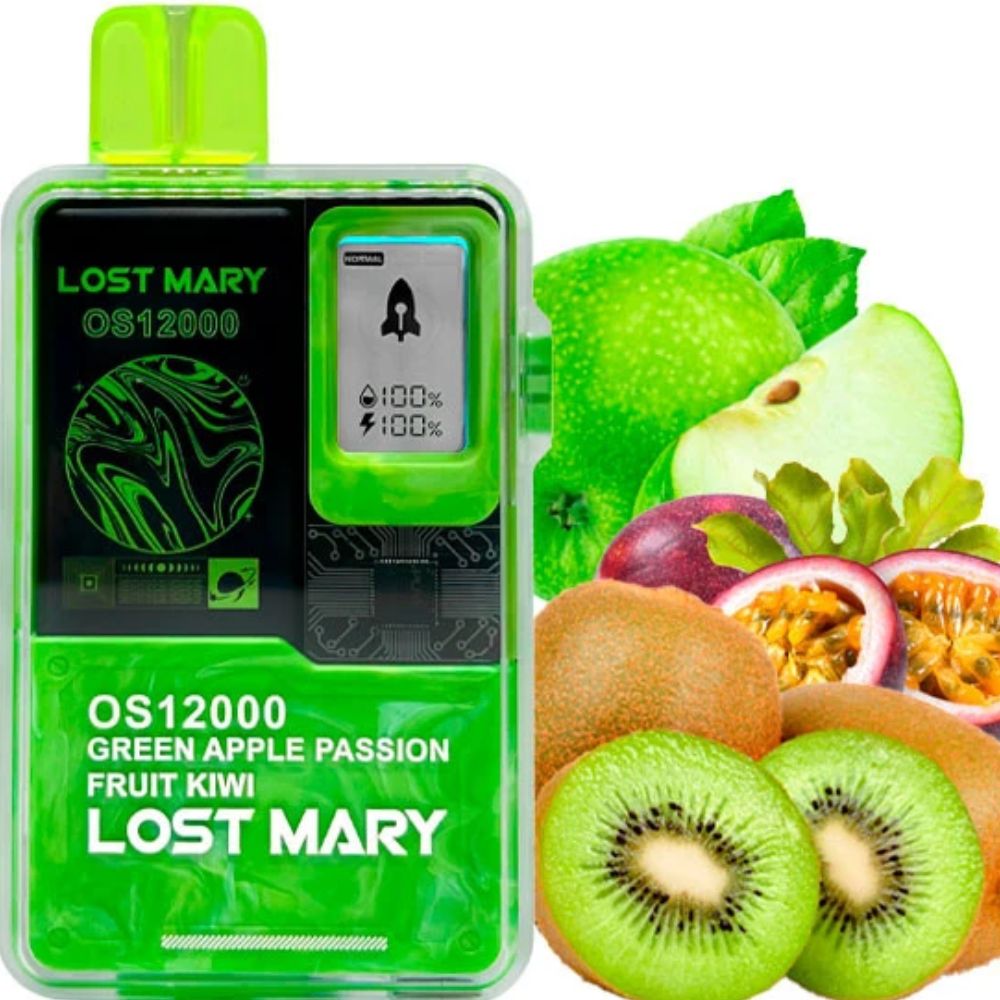 Електронна сигарета Lost Mary OS12000 Green Apple Passion Fruit Kiwi (Зелене Яблуко Маракуйя Ківі) - це інноваційний пристрій для вейпінгу, який має сучасний дизайн і приголомшливий функціонал. Однорізка обладнана прозорим дисплеєм для відстеження рівня заряду та кількості рідини. Насолоджуватися вейпінгом можна в одному із трьох режимів інтенсивності. За економні та ефективні витрати жижі відповідає сучасний сітчастий випарник з технологією QUAQ.