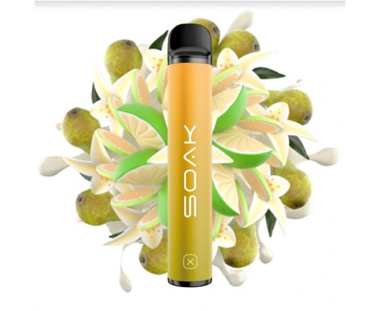 Електронна сигарета Soak 1500 Vanilla Pear (Соак Ванільна Груша з Лаймом) 2% вироблена із застосуванням технології Anti-Drop, яка запобігає протіканню рідини та поломки з електронікою, що приводять до горіння. Одноразки цього бренду є одними з найбезпечніших на ринку. Відрізняється компактними габаритами, корпус виготовлений із міцного металу. Використовується сольовий нікотин міцністю 20 мг/мл. Індикація роботи відбувається за допомогою світлодіода.