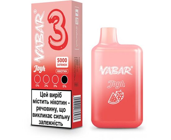 Електронна сигарета Vabar Joyh 5000 3 Полуниця Кавун - відмінне рішення для легкого та безтурботного вейпінгу. Це одноразовий пристрій, який не потребує дозаправки. Постачається з вже заправленою рідиною, після закінчення ресурсу якої підлягає утилізації. Повторне заправлення конструкцією не передбачено. Характеризується стабільною та безвідмовною роботою, а також яскравим та насиченим смаком.