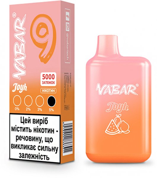 Електронна сигарета Vabar Joyh 5000 9 Тропічні Фрукти - відмінне рішення для легкого та безтурботного вейпінгу. Це одноразовий пристрій, який не потребує дозаправки. Постачається з вже заправленою рідиною, після закінчення ресурсу якої підлягає утилізації. Повторне заправлення конструкцією не передбачено. Характеризується стабільною та безвідмовною роботою, а також яскравим та насиченим смаком.