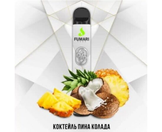 Fumari 800 Піна Колада. Відомий виробник тютюнової продукції Fumari слідує за сучасними трендами та займається випуском одноразових POD систем. Перевага одноразової електронної сигарети від цього бренду – відсутність необхідності обслуговування та заправки. Електронна сигарета готова до куріння одразу з упаковки. Запускається від затягування. POD система зі смаком Піна Колада порадує Вас своїм натуральним ароматом.