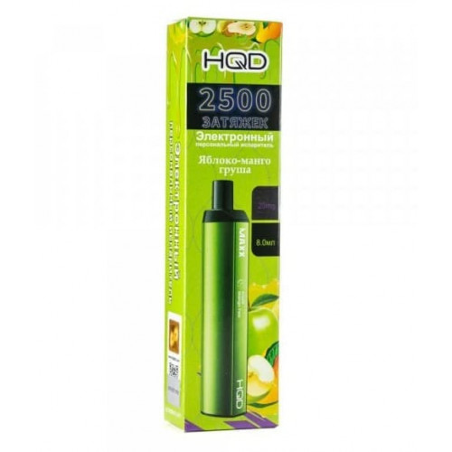 Одноразова електронна сигарета виробництва HQD Technologies LTD із поєднанням смаків яблука, манго та груші відрізняється високою якістю виконання. Зміст нікотину - 2% розраховане широке коло споживачів нікотину. Пристрій коштує значно дешевше за багаторазовий вейп, при цьому заміняє кілька пачок стиків або звичайних сигарет. /li>Тип акумуляторів: Вбудований; Ємність акумулятора: 1400 mAh; Заряджання від USB: Ні; Смак: Фруктовий мікс;< /li> Затяжок: 2500; Фортеця заправленої рідини: 2%; Зміст нікотину: 20мг.