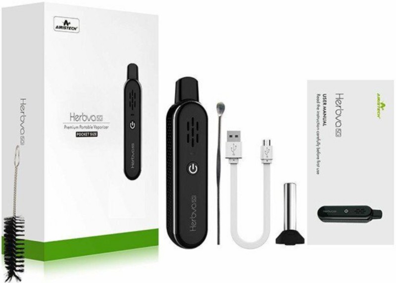 - Комплектація: 1 х Airistech Herva 5G, 1 х Плоский мундштук, 1 х Скляний мундштук, 1 х USB кабель, 1 х Щітка для чищення, 1 х Пристрій для набивання, Інструкція;