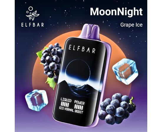 Електронна сигарета Elf Bar MoodNight 40000 Grape Ice (Виноград Лід) має великий ресурс автономності завдяки капсулі з рідиною великої ємності. Одноразка обладнана інформативним дисплеєм, на якому відображається основна інформація про стан пристрою. Акумулятор має можливість підзарядки. Електронна сигарета заправлена сольовою рідиною, активація відбувається за допомогою затягування.