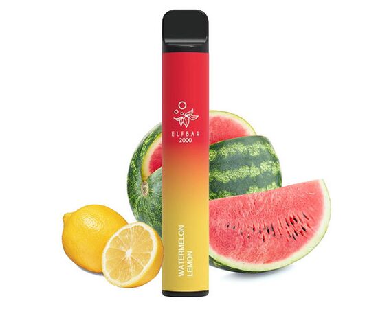 Одноразова POD система Elf Bar з поєднанням смаків кавуна та лимона відрізняється високою якістю виконання та натуральним ароматом. Принцип роботи - випаровування рідини, що складається з сольового нікотину та ароматизатора. В результаті такого горіння не виникають продукти горіння як у звичайних сигаретах, і як наслідок негативний вплив на організм людини значно нижчий. ;
