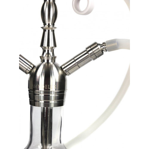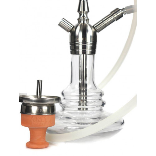 Кальян Amy Deluxe SS 14 TR (Емі Делюкс) Прозорий виготовлений у Німеччині з якісних матеріалів на сучасному обладнанні. Має розбійну конструкцію, завдяки чому його зручно доглядати, а також легко транспортувати. Кальян виконаний у сучасному стилі, ідеально впишеться в інтер'єр будь-якої кімнати чи кальянного закладу. Складання та розбирання кальяну не викликає труднощів.