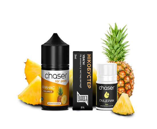 Рідина Набір Chaser Ананас 30мол 5% складається з ємностей ароматизатора, гліцерину і сольового нікотину, набір забезпечує вас усім необхідним для того, щоб створити рідину, що відповідає вашим вишуканим уподобанням. Рідина Black Balance спеціально розроблена для використання в електронних сигаретах із подсистемами та аналогічних пристроях із низькою потужністю. Поєднання пропіленгліколю та гліцерину в ідеальному співвідношенні 50/50 забезпечує щільну консистенцію рідини, гарантуючи миттєве проникнення у випарник та картридж. Таким чином, кожен вдих приносить вам багатий, насичений смак без будь-яких зусиль.