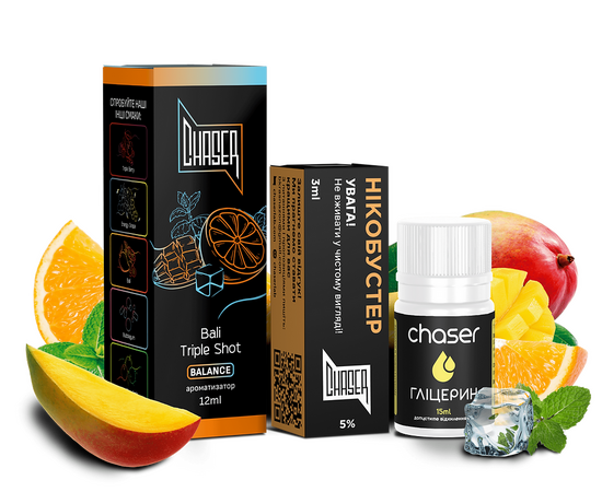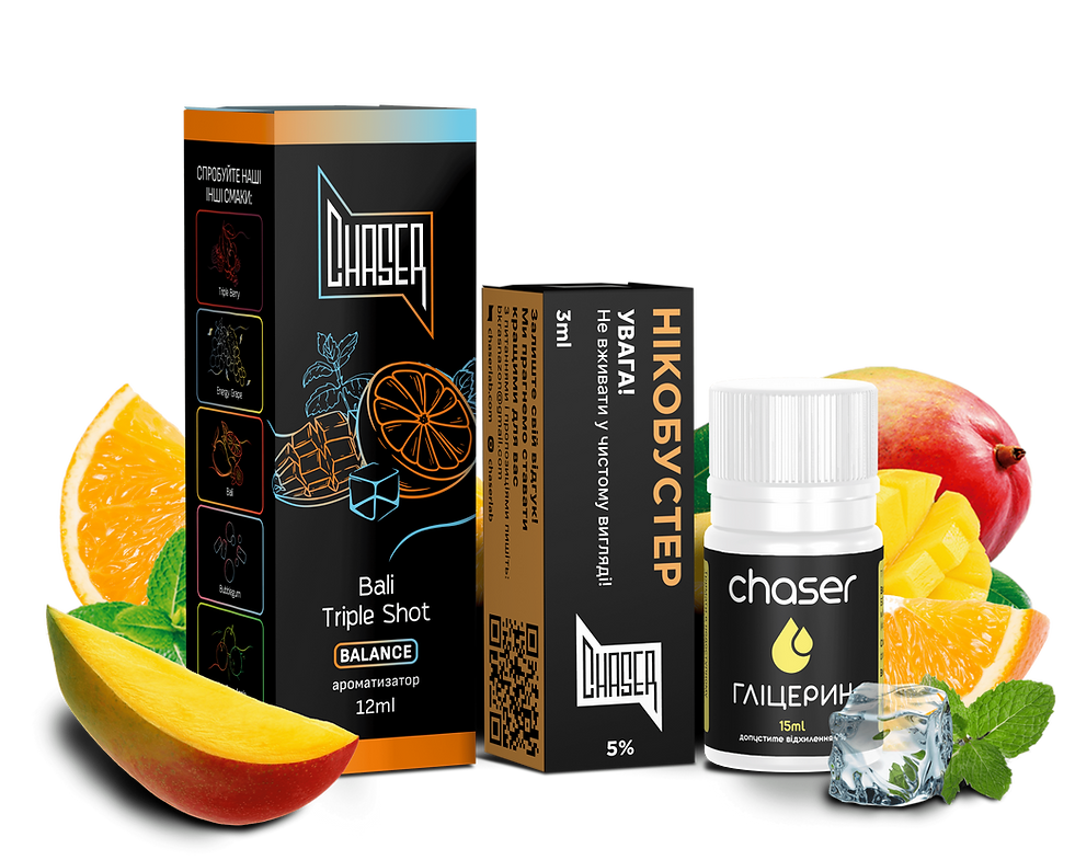 Рідина Набір Chaser Black Bali Triple Shot 30мол 5% складається з ємностей ароматизатора, гліцерину і сольового нікотину, набір забезпечує вас усім необхідним для того, щоб створити рідину, що відповідає вашим вишуканим уподобанням. Рідина Black Balance спеціально розроблена для використання в електронних сигаретах із подсистемами та аналогічних пристроях із низькою потужністю. Поєднання пропіленгліколю та гліцерину в ідеальному співвідношенні 50/50 забезпечує щільну консистенцію рідини, гарантуючи миттєве проникнення у випарник та картридж. Таким чином, кожен вдих приносить вам багатий, насичений смак без будь-яких зусиль.