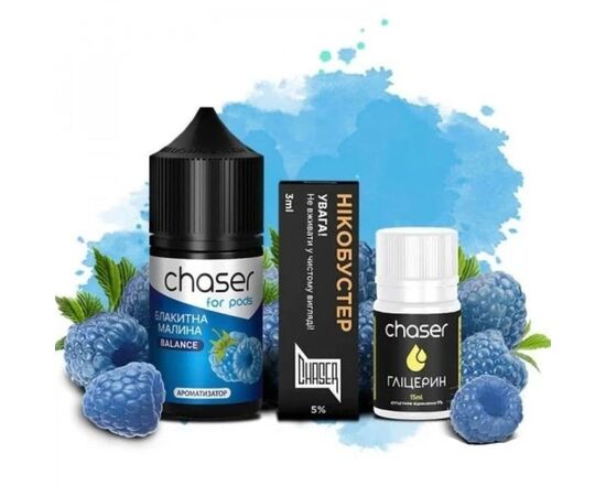 Рідина Набір Chaser Блакитна Малина 10мол 5% - створіть ідеальну рідину для максимально комфортного досвіду вейпінгу. Набір для самозамісу складається виключно із компонентів високої якості. Нікотин ви можете додати на свій розсуд. Якщо додасте весь нікобустер вийде 5% міцності, половину – 2,5%. Нікотин можна не додавати взагалі, вийде жижа з 0% міцності. Змішувати самозаміс потрібно у флаконі з ароматизатором, там достатньо порожнього місця.