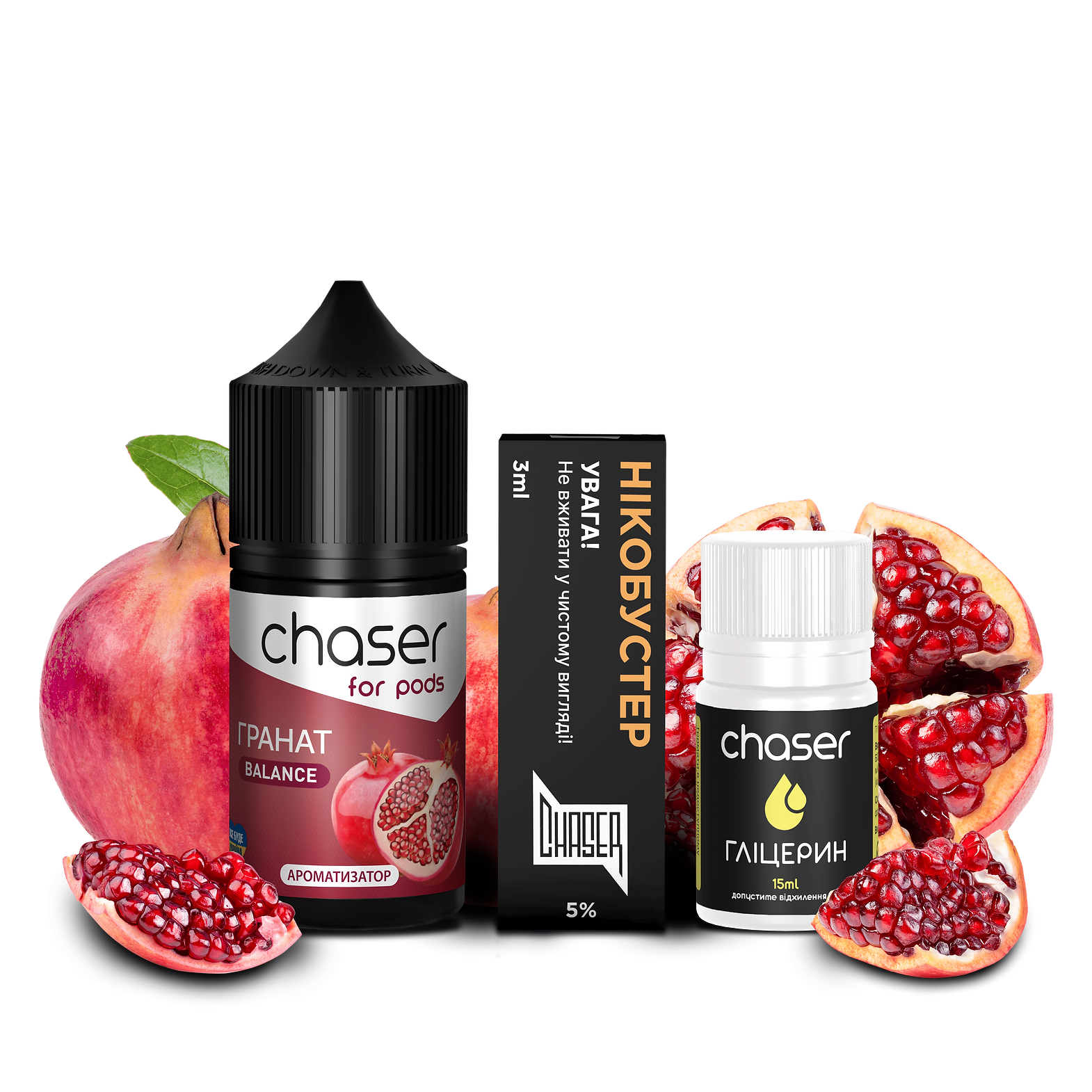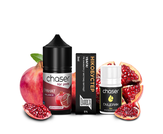 Рідина Набір Chaser Гранат 30мол 5% складається з ємностей ароматизатора, гліцерину і сольового нікотину, набір забезпечує вас усім необхідним для того, щоб створити рідину, що відповідає вашим вишуканим уподобанням. Рідина Black Balance спеціально розроблена для використання в електронних сигаретах із подсистемами та аналогічних пристроях із низькою потужністю. Поєднання пропіленгліколю та гліцерину в ідеальному співвідношенні 50/50 забезпечує щільну консистенцію рідини, гарантуючи миттєве проникнення у випарник та картридж. Таким чином, кожен вдих приносить вам багатий, насичений смак без будь-яких зусиль.