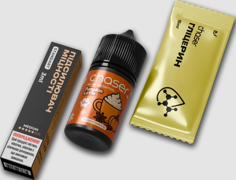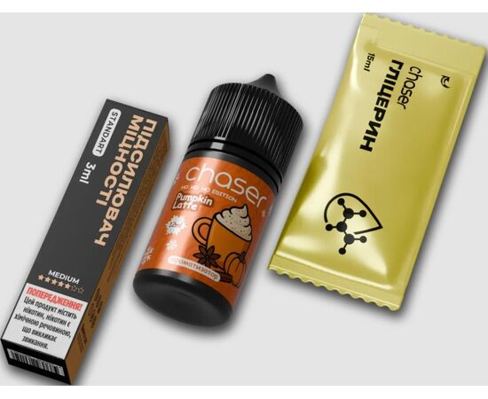 Рідина Набір Chaser Christmas Pumpkin Latte 30мол 5% – це преміальний продукт від провідного українського бренду, створений спеціально для любителів насичених фруктово-ягідних уподобань. У комплект входять всі необхідні компоненти для швидкого приготування сольової рідини у зручному флаконі на 30 мл із захистом від дітей. Співвідношення VG/PG 50/50 гарантує ідеальну смакопередачу та густу пару на підсистемах будь-якої потужності. Висока якість інгредієнтів та суворий контроль виробництва забезпечують м'який удар по горлу та чисте розкриття кожного аромату. Компактний формат дозволяє легко брати улюблений мікс із собою, насолоджуючись стабільністю та надійністю перевіреного часом бренду.