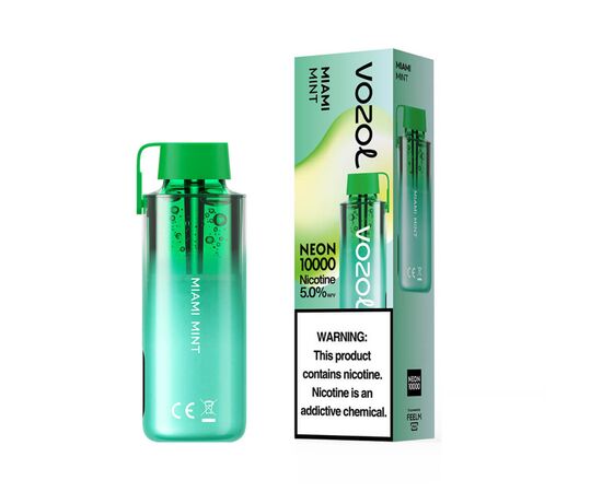Електронна сигарета Vozol NEON 10000 Miami mint (М'ята Майамі) складається із компонентів високої якості. До складу жижі входить рідкий нікотин високої якості, ароматизатори для харчового виробництва. У процесі вейпінгу виділяється багато ароматної пари. Одноразка запускається від затягування, не вимагає додаткової заправки. Вирізняється високим рівнем автономності. Час від часу потребує заряджання.