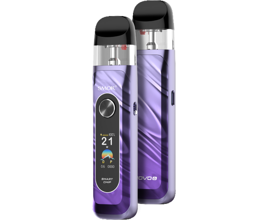 Smok Novo 6 KIT Purple Багаторазова Pod-система нового покоління. Пристрій оснащений акумулятором 1700 мАг, кольоровим TFT-екраном та регулюванням потужності до 40 Вт. Підтримує MTL та RDL, має регульований airflow, керування однією кнопкою та автозатяжку. Картриджі Novo 5 з верхньою заправкою забезпечують яскравий смак та стабільну роботу.