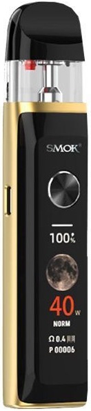 Smok Novo 6 Ultra KIT Gold Багаторазова Pod-система володіє великим сенсорним кольоровим екраном розміром 1,65 дюйма, контроль та управління здійснюється за допомогою кнопки та дисплея, присутня функція активації від затягування. Максимальний показник потужності сягає 40 Вт. Завдяки тонкостям налаштування можна встановити потужність, яка вас влаштовує або використовувати рекомендовану. Завдяки акумулятору ємності виробник гарантує до 5 днів автономії на одному заряді в залежності від інтенсивності вейпінгу.