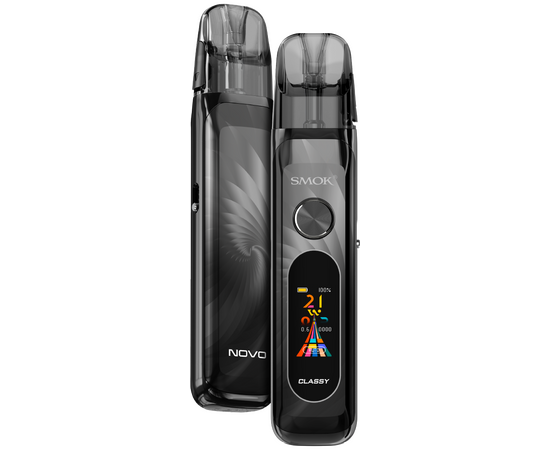 Smok Novo Classy KIT Jet Black Багаторазова Pod-система з акумулятором 1350 мАг, регульованою потужністю до 35 Вт та кольоровим 0,96″ TFT-дисплеєм. Підтримує MTL та RDL паріння, оснащена інтелектуальними режимами AUTO та MEMORY, регульованим airflow та подвійною активацією. Ергономічний корпус, швидка зарядка Type-C і зручне управління роблять пристрій відмінним вибором для початківців та досвідчених вейперів.