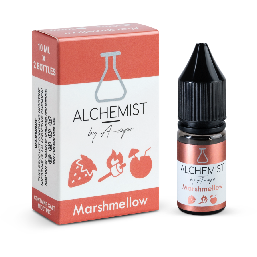 Рідина Alchemist Marshmellow (Маршмеллоу) 30мл 5% виготовляється виключно з якісних компонентів. В основі продукту лежить сольовий нікотин. Підходить для вейпінгу на електронних пристроях із невеликим рівнем потужності. Під час вейпінгу відрізняється яскравим та натуральним ароматом, а також густими хмарами пари.