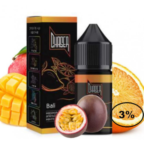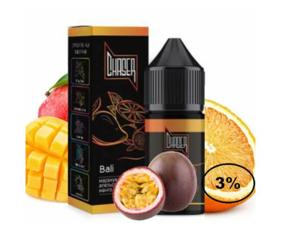 Рідина Chaser Black Bali (Чейзер Блек Маракуя Апельсин Манго) 30мл, 3% виробляється з сольового нікотину, та найкращих інгредієнтів. Жижа має відмінну якість, забезпечує яскравий і натуральний смак, під час вейпінгу ви насолоджуєтеся ароматним димом. Рекомендується використовувати в POD системах із невисокими характеристиками потужності. В результаті випаровування жижі виробляється аерозоль, який набагато безпечніший за тютюновий дим.