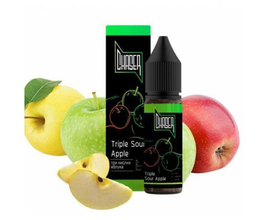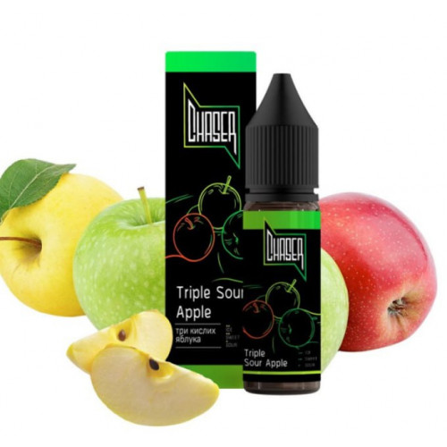 Рідина Chaser Black Triple Sour Aple (Чейзер Блек Потрійне Кисло Яблуко) 15мл використовується у POD системах з невеликим рівнем потужності. Виготовлена із сольового нікотину. Насичує організм швидше, ніж звичайні сигарети, сприяє скороченню частоти перекурів. Продукт відповідає міжнародним стандартам якості, виготовляється з найкращих компонентів, включаючи ароматизатори від відомих світових брендів.