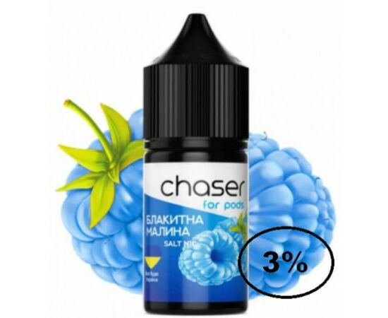Рідина Chaser (Чейзер Блакитна Малина) 30мл, 3% призначена для використання у POD системах з невеликим рівнем потужності. Виготовляється виключно з якісних компонентів. Має яскравий, насичений і натуральний аромат, а також велику кількість пари під час вейпінгу. В основі рідини лежить якісний сольовий нікотин, також для виробництва використовуються харчові ароматизатори від найкращих виробників.