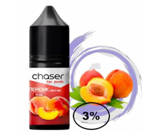 Рідина Chaser (Чейзер Персик) 30мл, 3% призначена для використання у POD системах з невеликим рівнем потужності. Виготовляється виключно з якісних компонентів. Має яскравий, насичений і натуральний аромат, а також велику кількість пари під час вейпінгу. В основі рідини лежить якісний сольовий нікотин, також для виробництва використовуються харчові ароматизатори від найкращих виробників.