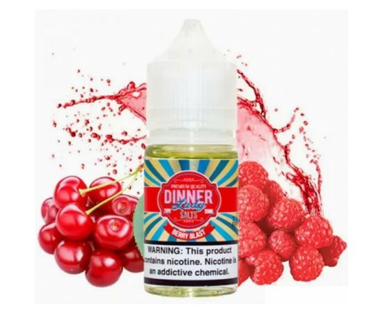 Рідина Dinner Lady Salt Berry Blast (Діннер Ягоди) 30 мл продукт високої якості, що виробляється у Великій Британії, відноситься до преміального сегменту. Висока вартість компенсується приємними смаковими відчуттями та високою якістю виконання жижі. Поставляється у великому флаконі ємністю 30 мл. Гліцерин та пропіленгліколь у складі продукту співвідносяться як 50 до 50 %.